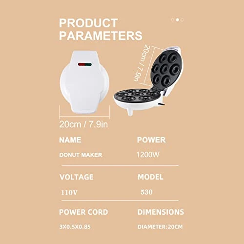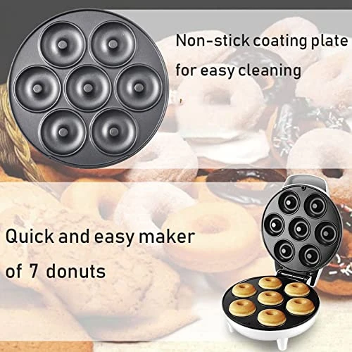 - 7 Holes Design: Mini donut machine maker has 7 holes, convenient to make 7 doughnuts quickly. Simple and easy to operate.