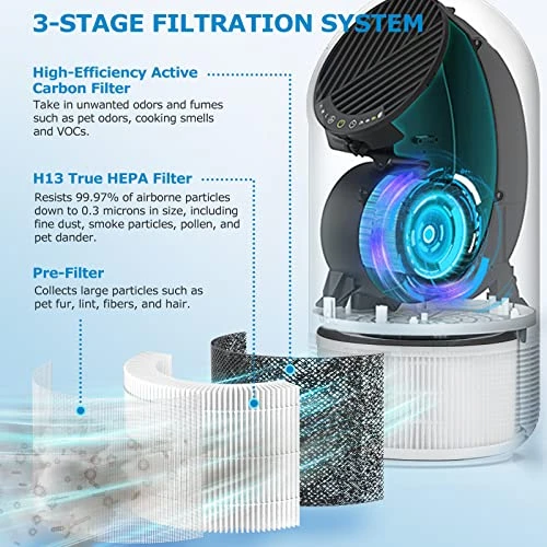 - 🍀【3-IN-1 FILTERATION SYSTEM】Our Fillo/Halo/Allo air filters are made of 3-in-1 H13 True HEPA high filtration efficiency material, which effectively attaches at least 99.97% of airborne particles as small as 0.3 microns in the air, such as pets dander, fine dust, cooking smell & smoke odors. This system provides a new comfortable air environment for you and your family.