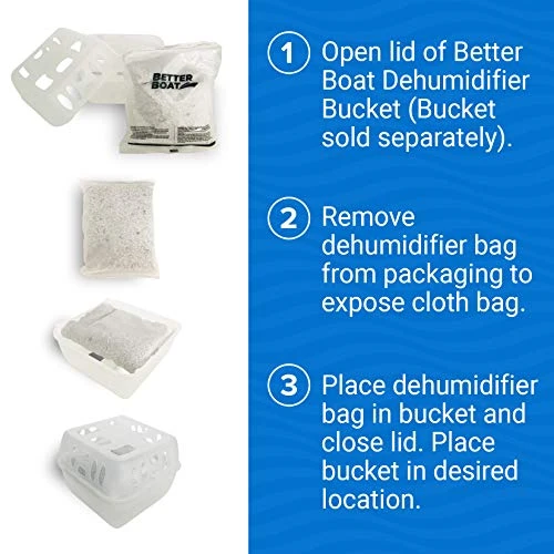 - USE EVERYWHERE: These bags with our separately sold bucket remove moisture in your car, boat storage, camper or RV. With the separate tub it makes it ideal for a bathroom, basement or closet with no scent. The ideal moisture remover.