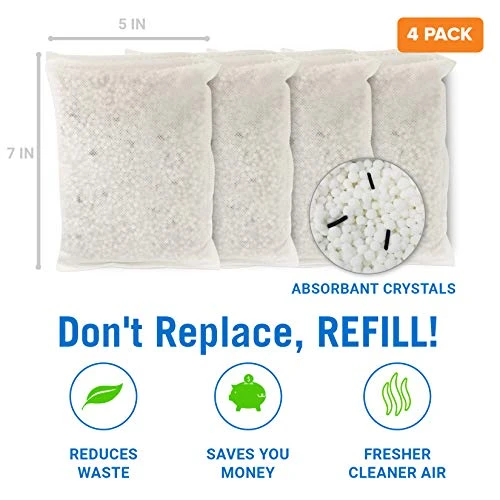 - Included Components: 4 pack of dehumidifier refill bags for moisture absorption