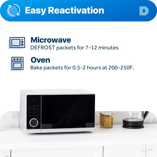 - Packets can be Reactivated by Heating in an Oven for 0.5-2.0 hours at 200-250 F Or Microwave for 10 Minutes at DEFROST.
