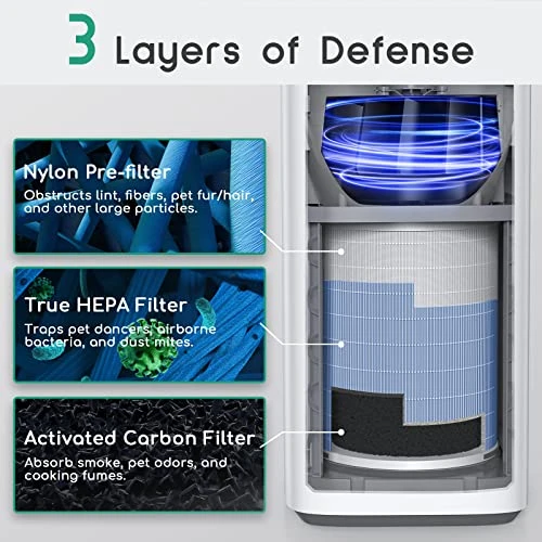 - 🙌【MULTI-FUNCTIONAL】 Set a 2/4/8/10/12/24h timer, never worry about forgetting to turn it off. Runs quietly in sleep mode without disturbing you. Factory direct brand that quality guaranteed. All in all, the true HEPA air purifier is great for creating a healthy living environment for children, pregnant, pets owner, or people who have rhinitis.