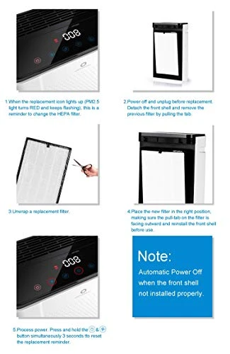 - FRIENDLY REMINDER: Please power off before replacing the filter. Remember to close the front shell properly after replacement. Otherwise, it will fail to process power out of safety concerns.