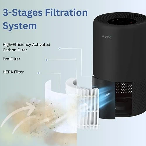 - Sleek Design & Quiet Operation: Arovec Air purifiers provides clean air to HEPA standard with a stylish design. This air purifier enhances your roomโs ambiance and comfort levels while helping to reduce respiratory issues caused by pollution or dust.. Undisturbed and quiet while robust and powerful in performance. Optional Night-light/OFF-light is an excellent choice for light sleepers.