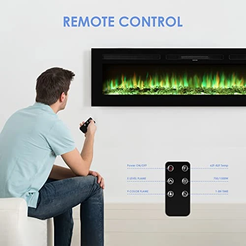 - 【Multi-Operate Modes by Remote Control】: Electric fireplace can be dual operated by remote control and touch screen. In the cold winter, you can easily control the power heater from your bed. Temperature from 62℉ to 82℉ to suit your preference. A timer can be shut off from 1H to 8H. 5 light intensities and 9-color flame can be easily changed with remote control.
