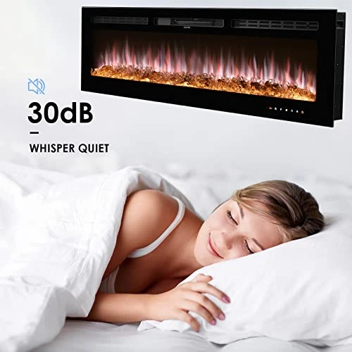 - 【Safe&Less Disturbing】: Electric fireplace has ETL Certificate Approved. A high-power heater is equipped with overheating protection, which will automatically cut off the device once the heater is overheating. WHISPER QUIET blower heating(≤40dB) can provide you with a quiet environment when you are sleeping or watching a book. Hidden touch screen design provides you with a luxury experience.
