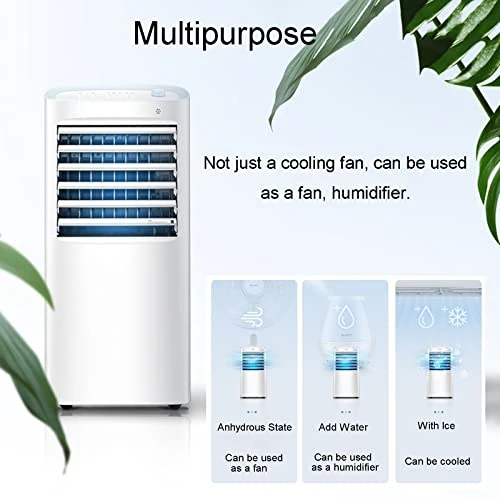 - ❆【Easy to Use】This cooling fan doesn’t need windows or drains,which is easy to install.The air cooler is 38 x 31 x 76cm and comes with 4 heavy duty 360° universal wheels, which make it easy to move as needed. Very compact and convenient.