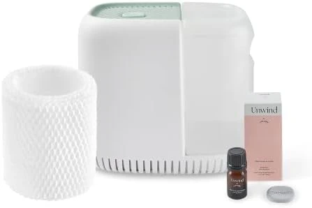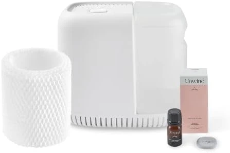 - INCLUDES AROMA DIFFUSER TO GIVE HOME A SIMPLE AND CLEAN SCENT: Canopy Humidifier comes included with; Canopy Humidifier, Unwind Aroma, Filter, Power Cord & Adapter. The Canopy Humidifier measures 10in x 7in x 8.5in making it perfect for small nightstands. The Canopy Humidifier has a modern design that will accent any home well.