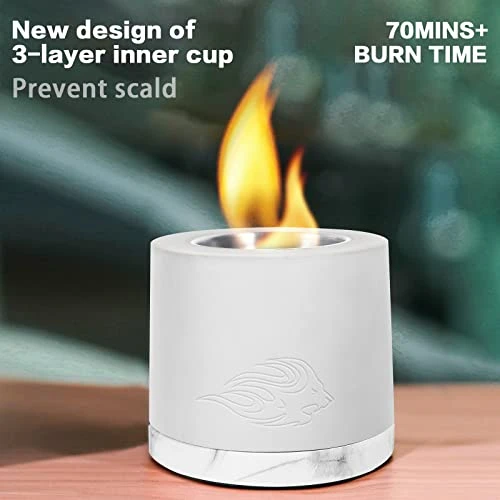 - 🔥STABLE & SAFE : This tabletop fireplace is made of high-quality concrete. Comes with a base to help the stove dissipate heat while in use, protecting your table and any surface.To prevent any potential fuel spillage and cracking, the burning capsule is also set in three stainless steels safety liner. Each fire pit is handcrafted. You will receive a unique tabletop fireplace, shading of concrete can vary slightly.