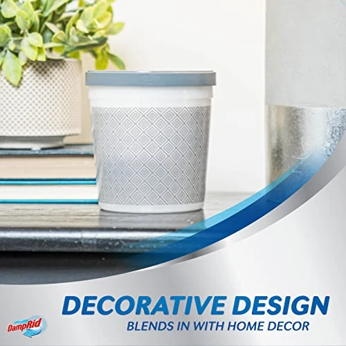 - DECORATIVE DESIGN: Featuring a decorative design, these moisture eliminator cups blend in with your home decor. Keep out of reach of children. Do not use in moving vehicles.