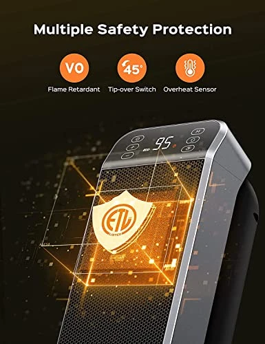 - Safe & Reliable: Made of V0 flame retardant materials, this ETL-listed ceramic heater comes with multiple security features including overheat and tip-over protection, 24h auto off. The plug is enhanced to prevent deformation during use, ensuring your worry-free use all day.