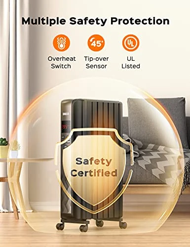 - Enhanced Safety: Dreo Oil Filled Radiator Heater made of V0 flame retardant materials was certified by UL. Built-in tip-over switch, Dreo Oil-filled heater will automatically shut off while tip-over by accident to ensure you and your family are safe and worry-free
