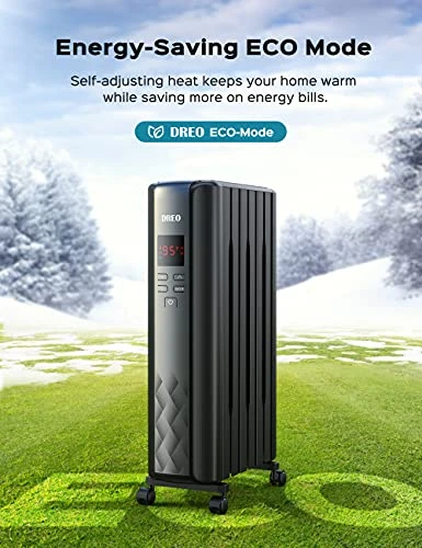- Feel Heat Faster: The spindle-shaped openings, 225 mm larger than others enlarged fins and Dual U-shaped heating tubes make the Dreo oil radiator heater so effective in distributing heat that the heat can be doubled and released quickly, evenly and efficiently to a large area or the entire room.