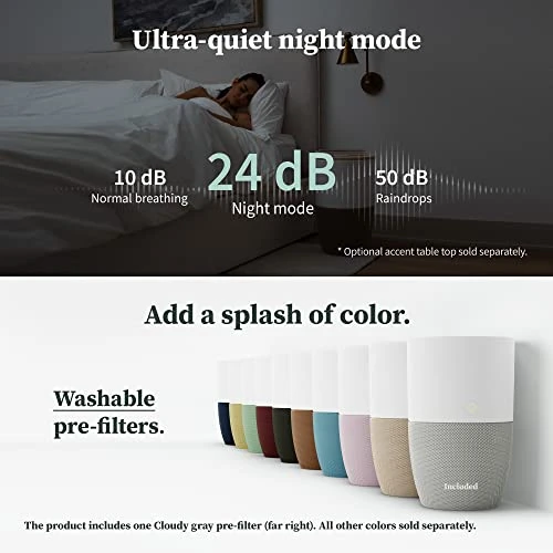 - ULTRA-QUIET air filtration with noise levels as low as 20 dB.