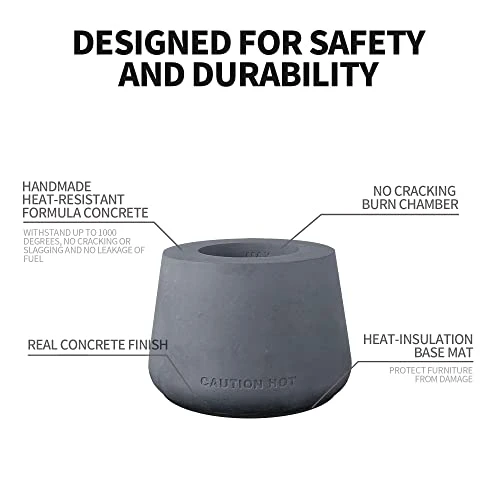 - 🔥 WHY CHOOSE US: Durx-Litecrete has studied the dangers of fuel leakage during combustion in the market and has improved our product to address these problems. Compared with other products, our tabletop fire pit is made of Heat-Resistant with our patented formula, without any metal burner cups and will not crack or have fuel leakage due to cracking. Create a Simplicity and natural beauty of handmade concrete style without any metal burner cup.