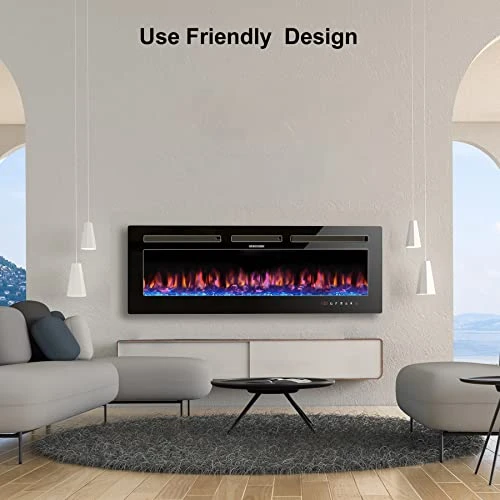 - 【Easy Operation】: Touch screen and remote control, two control methods make it easier and more convenient to control various functions of the fireplace. Various independent buttons are very clear, power switch, timing function, flame color, brightness, speed and heating buttons, with rich functions.