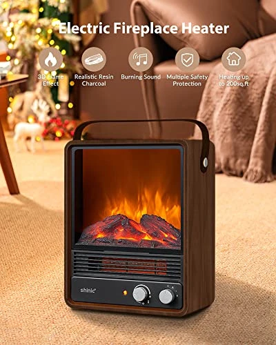 - 🔥【Portable and Durable Design】This small electric fireplace is portable(11.8in x 5.9in× 14.6in) and lightweight(8.2 lbs), easy to move from room to room to keep you warm anywhere in your home. 12-month warranty, any questions please contact the shinic customer service team!