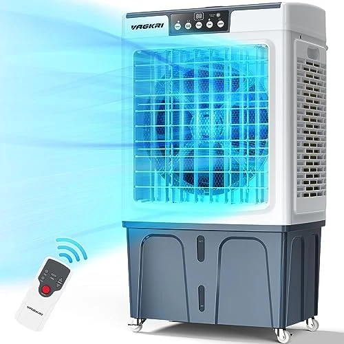- 【Excellent Cooling Effect】VAGKRI air cooler has 3 sided intake pannels allow for fast cooling and super cool air, delivered strongly with powerful fan motors. It also has an ice compartment for ultra effective cooling.