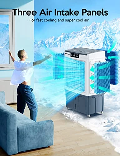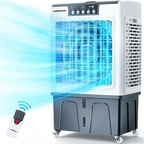- 【Excellent Cooling Effect】VAGKRI Evaporative air cooler has 3 sided intake pannels allow for fast cooling and super cool air, delivered strongly with powerful fan motors. It also has an ice compartment for ultra effective cooling.