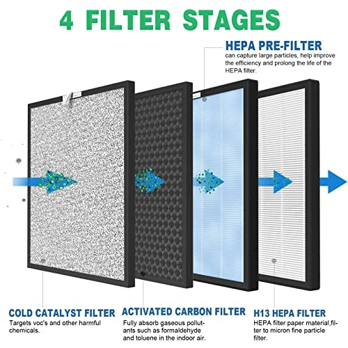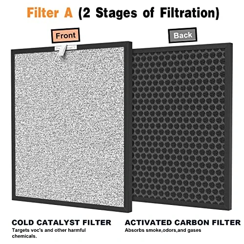 - 【Value Package】There are 2 types of filters totally 6 pcs replacement filters in the package: 3 pcs Filter A and 3 pcs Filter B. (Filter A 2 in 1) with one side: cold catalyst filter, and the other side: activated carbon filter. (Filter B 2 in 1) with one side: blue color pre-filter, and the other side: H13 grade ture HEPA filter. This value package with budget price will save your money and time for next purchase.