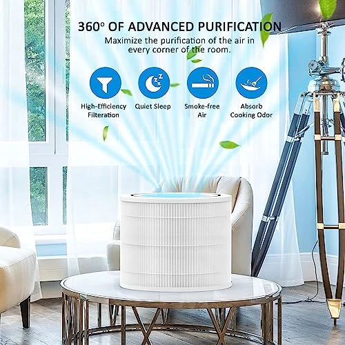- High-Efficiency Activated Carbon Filter absorbs household odors from pets, cooking, smoke, wildfire, and harmful VOC’s