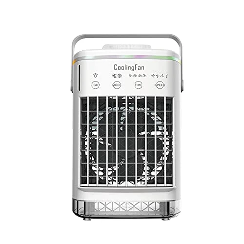- Design Style: Affordable & Portable – Compact Size For Portable Use. Design With Built-in Water Tank, Convenient For Carrying To Any Place, Even Outside When Your Family Goes For Vacation. The Product Is Equipped With A 5V 1.5A USB Charger Interface, Long There Is A USB Interface, Our Product Will Be Supplied To Work. 4 Timing Function And Two Wind Modes – Our Mini Desk Air Cooler Built-in Four-speed Timing Function, 2-4-6-8 Hours, Cold Wind And Natural Wind Modes Are Optional. When The Cooler