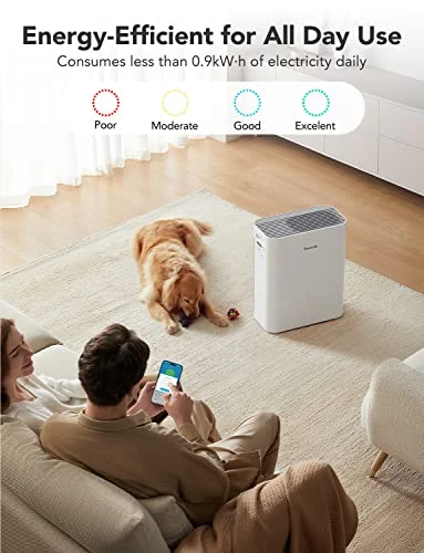 - Auto Mode: The sensor in the air purifiers for pets hair detects air quality and auto-adjusts the purification speed based on the air quality. It will stop running when the air quality is excellent for 30 min, saving you more energy.