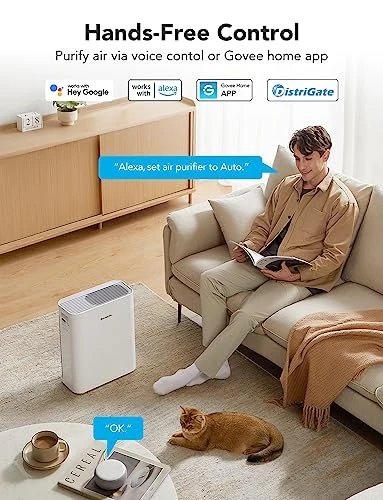 - Breathe Fresh Air: Certified by Energy Star, ETL, FCC, and CA65, Govee Life H7123 air purifiers with washable filters capture at least 99.97% of 0.3 micron particles in the air, cleans a 198 sqft room 5 times an hour and a 991 sqft room once an hour.