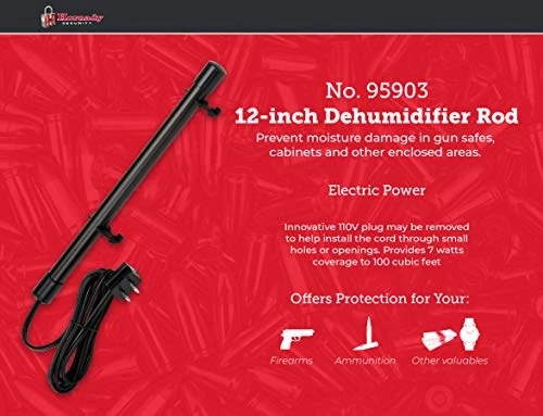 - Hornady Dehumidifier Rod – ideal moisture absorber for safes that eliminates condensation and dampness and no need to worry about recharging your dehumidifier as itβs always connected. Do not touch after plugging it in