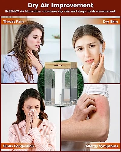 - 【Dry Air Savior】Adjusting the indoor humidity of your surroundings to breathe easier. The ultrosonic cool mist INSENVO humidifier can moisturize your skin no matter you are in bedroom, office, living room or in traveling. Offering you fresh air and moisturizing your skin.