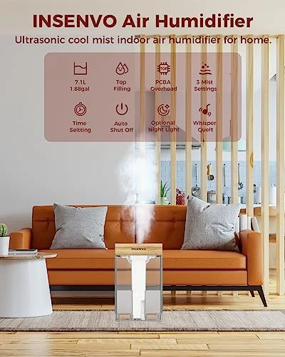 - 【Unique Design】Different from the other traditional air humidifier with the leakage problem, this INSENVO air humidifier features with a top fill design that avoids water leakage effectively, ensuring an optimal working performance.