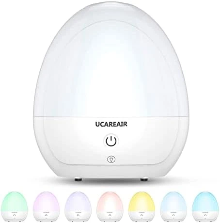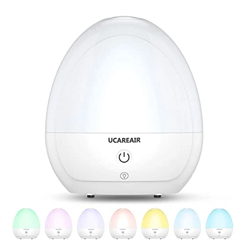 - 🌈【7 COLOR CYCLING FOR NIGHT LIGHT】This cool mist humidifier has a color-changing rainbow-like glow that creates a peaceful ambiance while delivering a soothing mist. You can fix one desired color to suit your mood and atmosphere. Besides, soothing dim NIGHT LIGHT offers maximum relaxation during sleeping. UCAREAIR hopes to relieve your stress by soothing the environment.