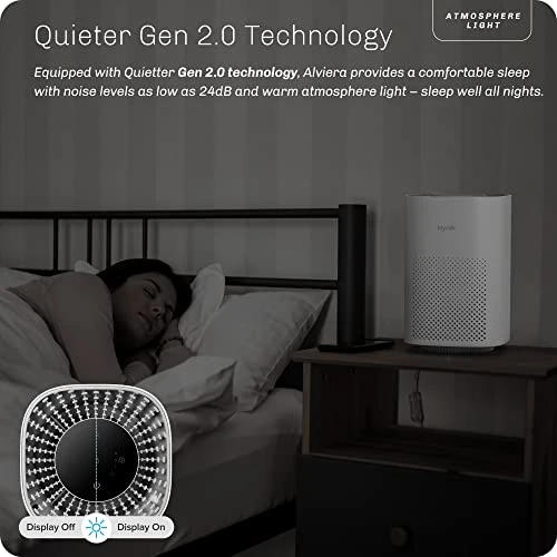 - LESS ENERGY THAN A LIGHTBULB: Meets the strict requirements set by the EPA. 24/7 clean air guilt-free! Built-in advanced Quietter Gen 2.0 noise reduction technology, maintains 24db noise at the lowest speed, ensuring Alviera wonโt disturb your sleep.