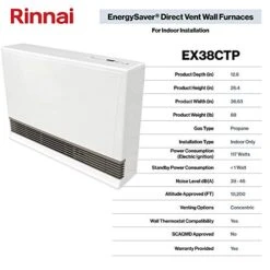 Rinnai EX38CTP Space Heater Wall Furnace, Direct Vent, Propane Gas (36.5K BTU)