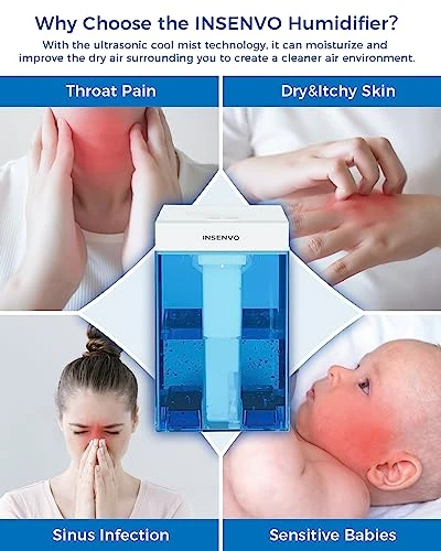 - 【Wide Application】The INSENVO cool mist air humidifier can be use for different conditions. No matter you are working in the office, sleeping in bedroom, indoor planting or in traveling,which can moisture the dry air around you. Bringing you a more comfortable environment. Relieving your pressure and feeling more relax.