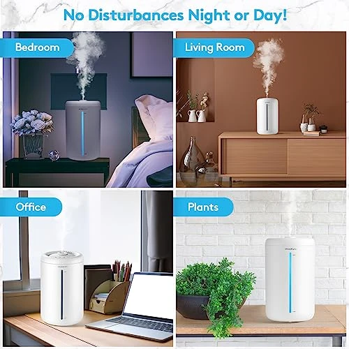 - 【Stay Healthy】Cough and congestion relief – Humidifiers help ensure proper humidity levels in large rooms. Indoor humidity levels between 40-60% can help relieve cough/congestion, keep throat/nasal passages hydrated and more.