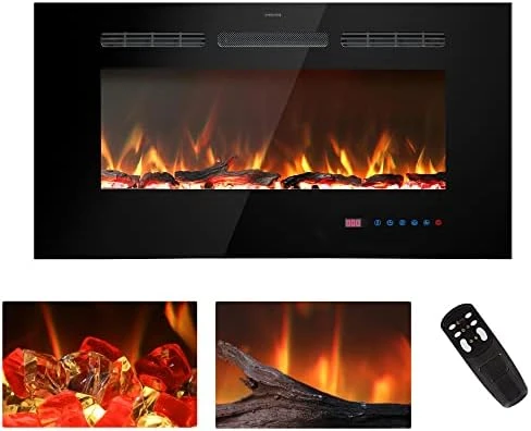 - Safety and Warranty: The electric fireplace have overheating protection will cut off automatically when reach unsafe temperature(212°F). Please leave 8″ of space between fireplace and TV. 1 year warranty and 24 hours customer service, if you have any question, pls feel free contact us.