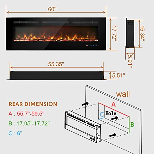 - Recessed & Wall Mounted Installation: This black linear fireplace can be recessed in wall or hang on the wall without taking up too much space, just assemble the brackets for wall mounting or dismantle the brackets for inserting. Perfect for living room, bedroom, dining room, study, office and other occasions.