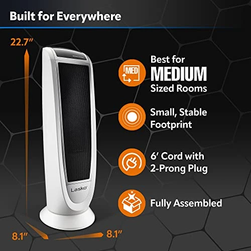 - ✅【BUILT-IN SAFETY FEATURES】Features overheat protection with a safer ceramic element designed to automatically regulate its operating temperature. The exterior heater housing stays cool to the touch and has a built-in carry handle, so you can move it safely from room-to-room. This heater is ETL listed and complies with North American safety standards. This tower space heater stands 22.76 inches H and 8.13 inches wide/deep — a perfect size for the bedroom, home office, living room, or almost any room in the home