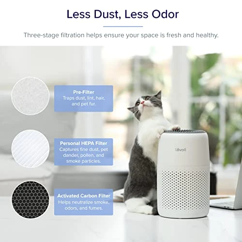 - SAVE SPACE: Tired of dragging a bulky purifier back and forth, Light, travel-friendly, and compact, the Levoit Core Mini Air Purifier (6.5 × 6.5 × 10.4 in) easily fits in any bedroom, office, or living room, creating less clutter and more fresh air