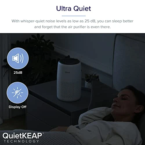 - QUIET OPERATION: Sleep soundly without loud rattling coming from your air purifier. This little air purifier keeps noise levels as low as 25dB while keeping your space fresh