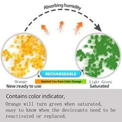 - 【Safe Dehumidifier】 Non-toxic, safe silica gel beads efficiently absorb damp and moisture from the air. Through the top window of the mini dehumidifier, the use status can be observed at any time, which is convenient for reminding to renew the dehumidifiers in time.