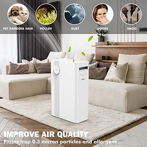 - 4-IN-1 HIGH-EFFICIENCY FILTER – 4-Stage filtration system with Pre-filter, H13 True HEPA, Activated carbon filter, Cold Catalyst filter, remove harmful microns, odors and VOC.·