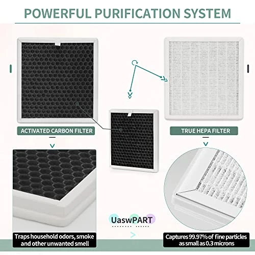 - 【BREATHE EASIER】Pre-Filter traps large particles in the air like hair, lint and more. Our Activated Carbon Layer features more carbon than other filters on the market. Designed for greater surface area absorption, our specific honey-comb carbon filter, which compatible with purezone air purifier replacement filter, is able to absorb more household odors, smoke and last much longer.