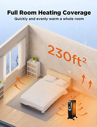 - [Quiet Operation] Enjoy peace and quiet room while keeping your space warm and cozy without annoying heater sounds that disturbs you from sleep, work, meditation, chat or anything requires peaceful .it offers warmth more gentle and lasting but usually takes more time than fan heaters because its heat-conducting medium is oil.
