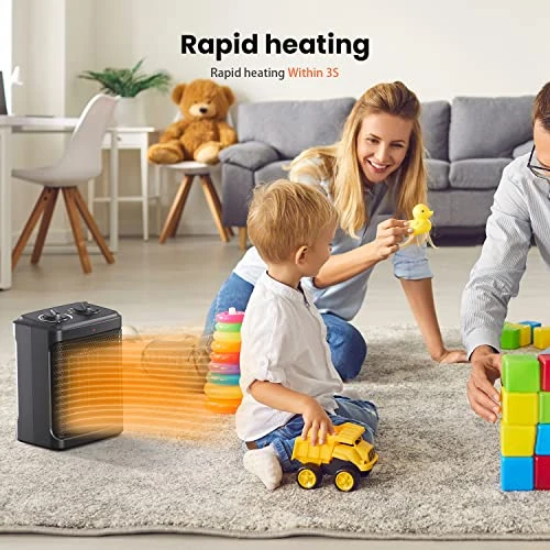 - 【Ceramic Technology】: Ceramic heating element that provides faster and more efficient heating than traditional heaters. With PTC ceramic heating tech and high speed fan, This space heaters maximize heat output , and are long lasting. Quiet operation
