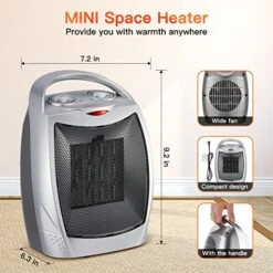 Portable Electric Space Heater 1500W/750W Personal Room Heater With Thermostat, Small Desk Ceramic Heater With Tip Over And Overheat Protection ETL Certified For Office Indoor Bedroom (Silver)