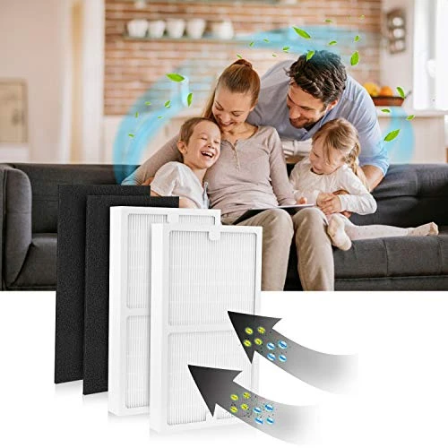- 【TWO IN ONE】: HEPA filters can remove large and airborne particles, including dust, pet dander, common pollutants, and fabric fibers. CARBON Filter can reduce more than 99% of odor from food, cigarette, and pets as well as volatile organic compounds.