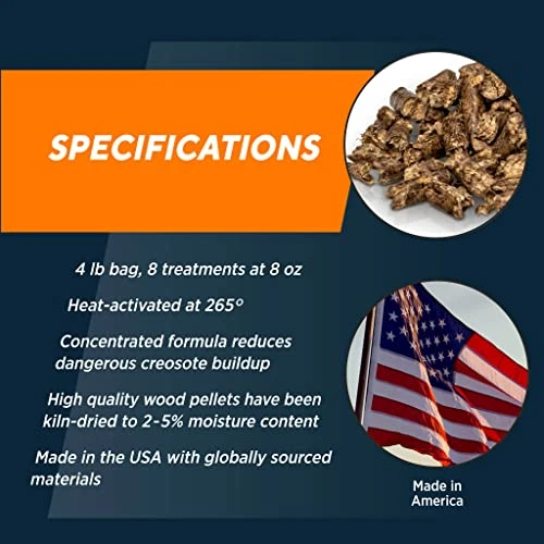- Concentrated creosote removing formula combined with high quality wood pellets dried to 2-5% moisture content