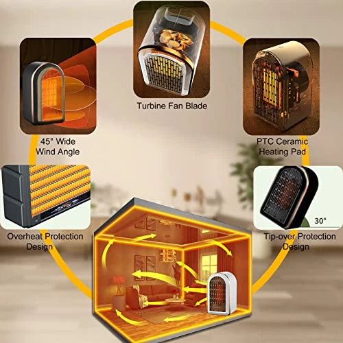 - 🔥 【WARM ANY ANGLE】 45° wide-angle oscillation sweeps around to cover the whole area, providing wide-reaching heat for your office, desktop, bedroom, garage, basement, etc.